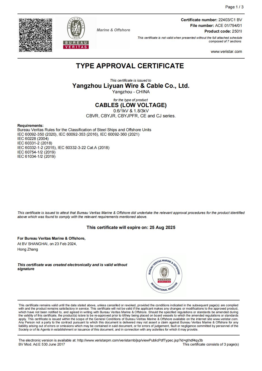 GIẤY CHỨNG NHẬN XÃ HỘI PHÂN LOẠI BV