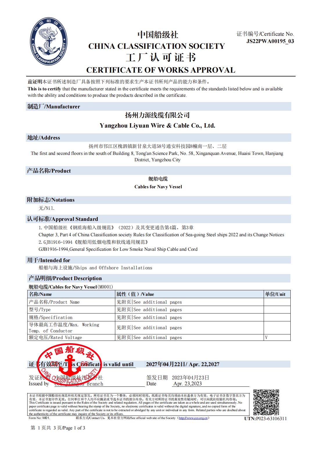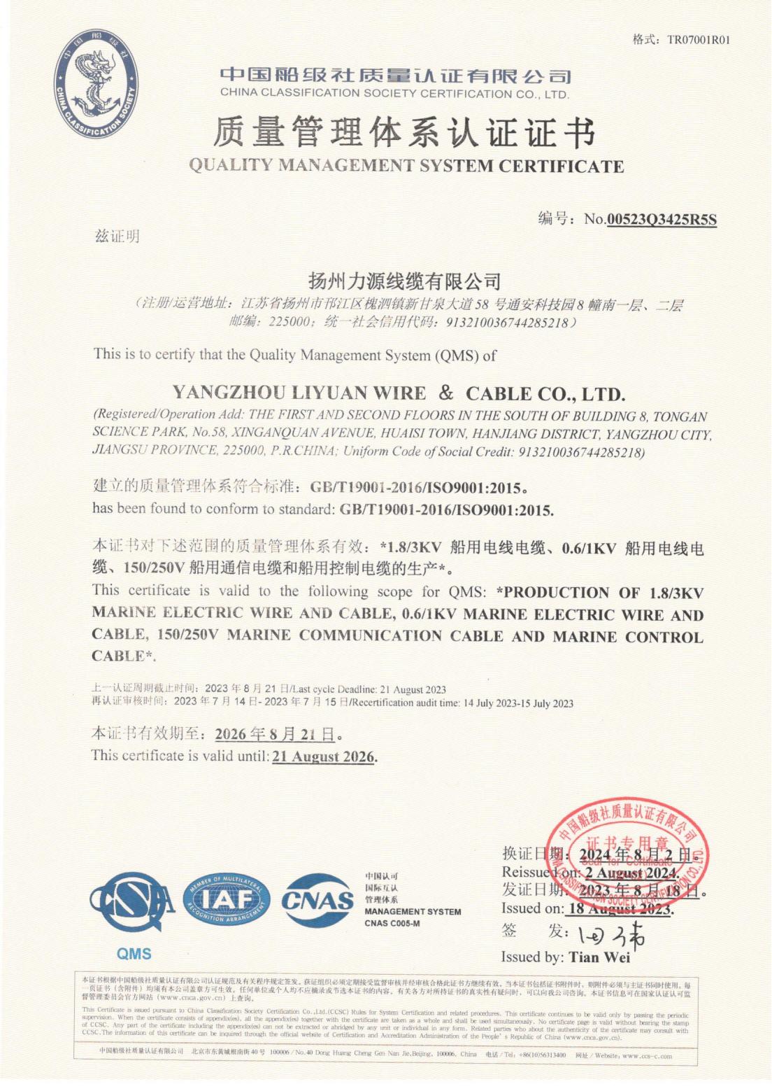 CHỨNG NHẬN XÃ HỘI PHÂN LOẠI CCS TRUNG QUỐC