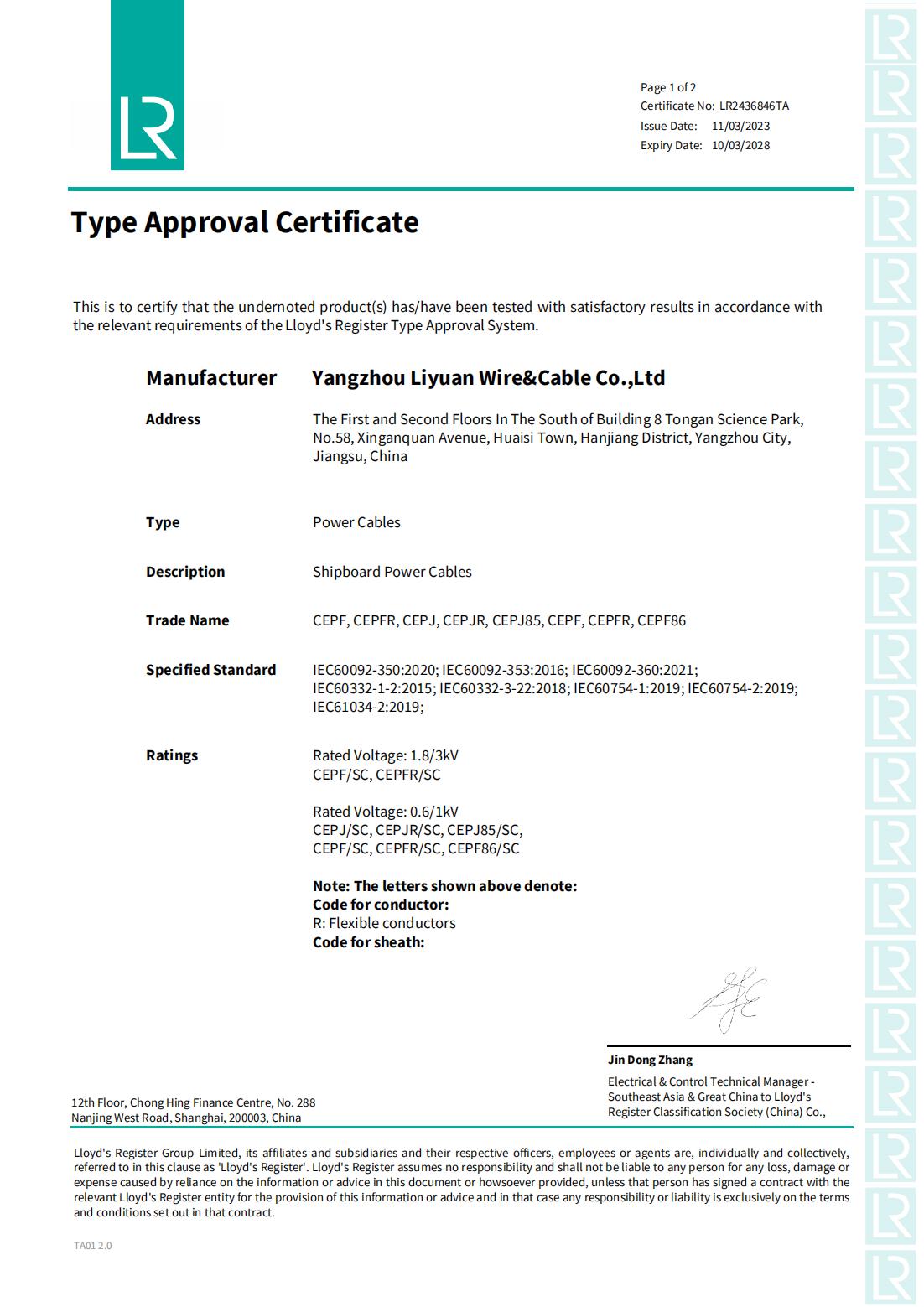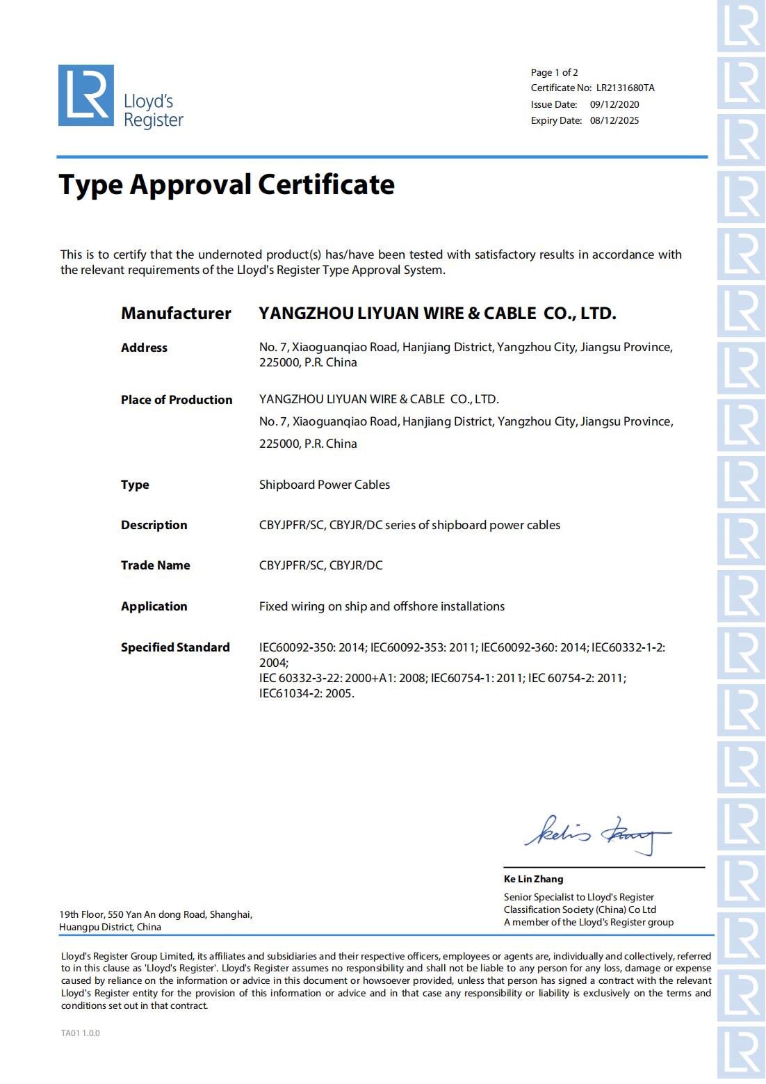 GIẤY CHỨNG NHẬN XÃ HỘI PHÂN LOẠI LR